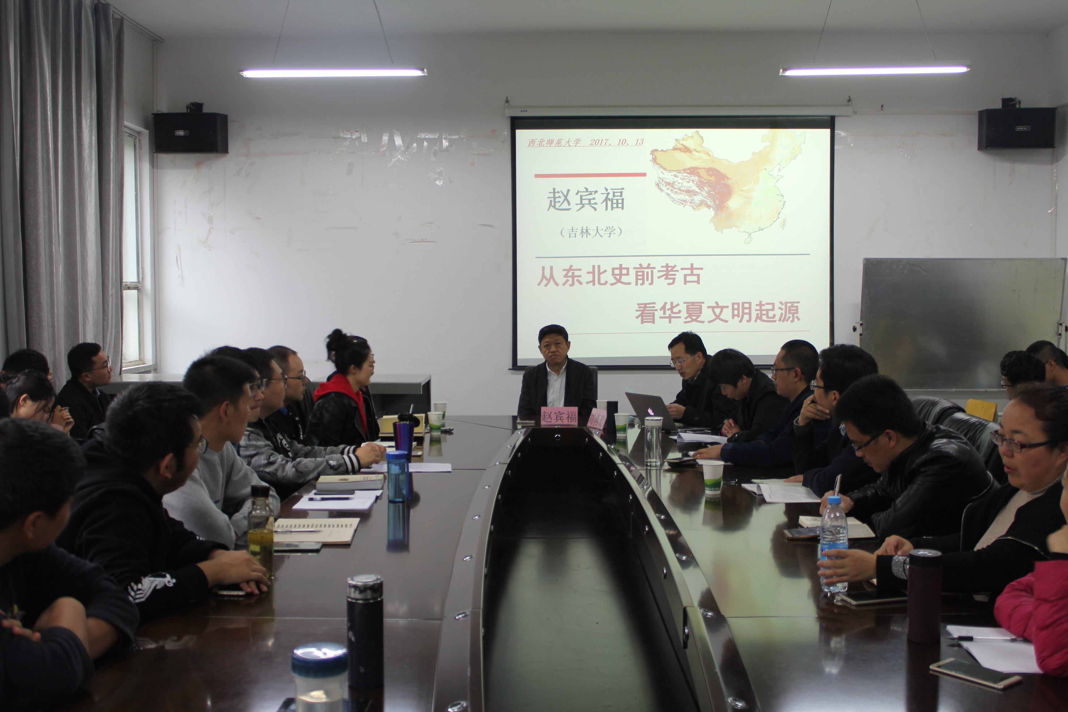 2017年10月13日,应万象城awc888、丝绸之路文明复兴与中国向西开放协同创新中心邀请,教育部长江学者特聘教授、吉林大学博士生导师赵宾福教授在教学6号楼204会议室做了《从东北史前考古看华夏文明起源》的学术报告。兰州大学任瑞波博士,万象城官网旅游学院教师任赟娟,万象城官网教师僧海霞、李迎春及博士生、硕士生近100人参加了报告会,刘再聪副院长主持报告会。