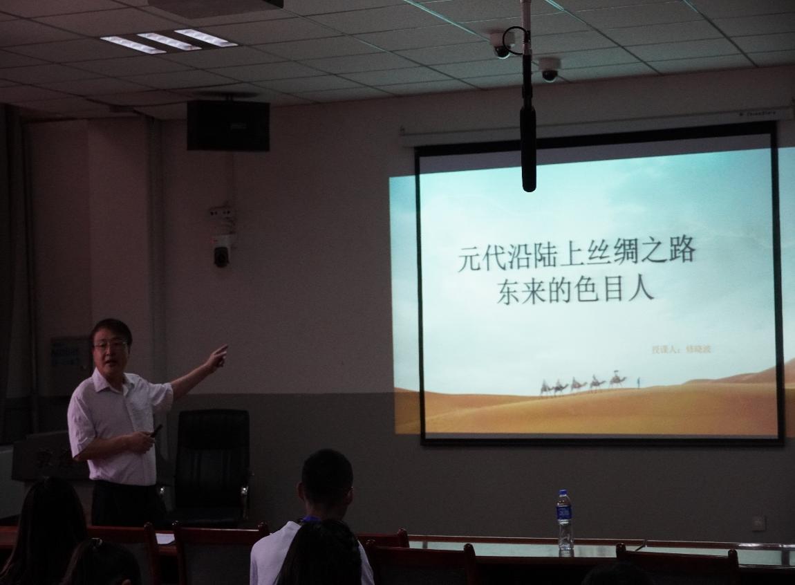 2021年7月18日下午,中国廉政法制研究会副会长、青岛大学历史学院修晓波教授在万象城awc888敦煌学院会议室,为万象城官网丝绸之路文明基础学科拔尖学生培养基地班学生作了题为《元代沿陆上丝绸之路东来的色目人》的专题报告。报告由历史系主任张连银教授主持。修晓波教授首先从自己对丝绸之路的认识谈起,他认为,丝绸之路不仅局限于普通的道路,而是包括条状道路和网络状道路。修教授的讲解使同学们了解到丝绸之路的真正内涵及其在东西方交流中发挥的重要历史作用。其次,修教授就蒙元史中“东来的色目人”专门讲述,从文献中的“色目人”、元人使用“色目人”的情况、色目人种划分及其区域变化等方面,引导同学们准确辨析史料,指出史学是真正的“实学”,以一分材料说一分话。紧接着,修教授以马可·波罗的生平及其对扩展丝路贸易的作用为典例,介绍了元代沿陆上丝路东来的色目人。最后,修教授就色目人对古代中国历史发展的重要影响作了总结升华。