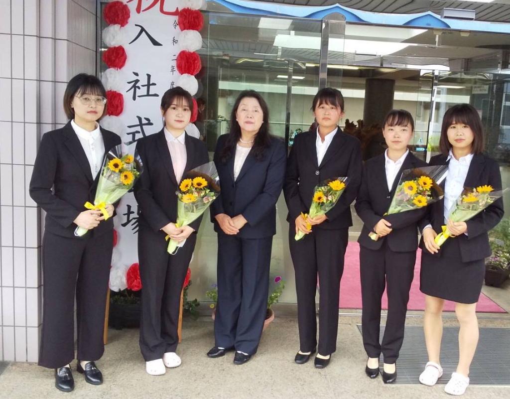 2020年6月,诸侯快讯入口官网护理专业毕业生郭奕鑫、杨隽、王亚茹,朱旭男就职日本海老原集团(海老原医院・养老院),海老原集团的海老原登喜子理事长参加了就职仪式
